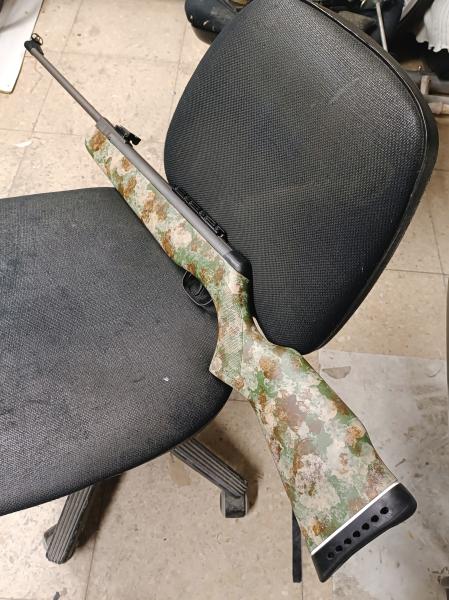 Aquí mi modesto trabuco Gamo Jungle con punto rojo, cantonera tuneada almohadillada en camuflaje y escarapela nacional.