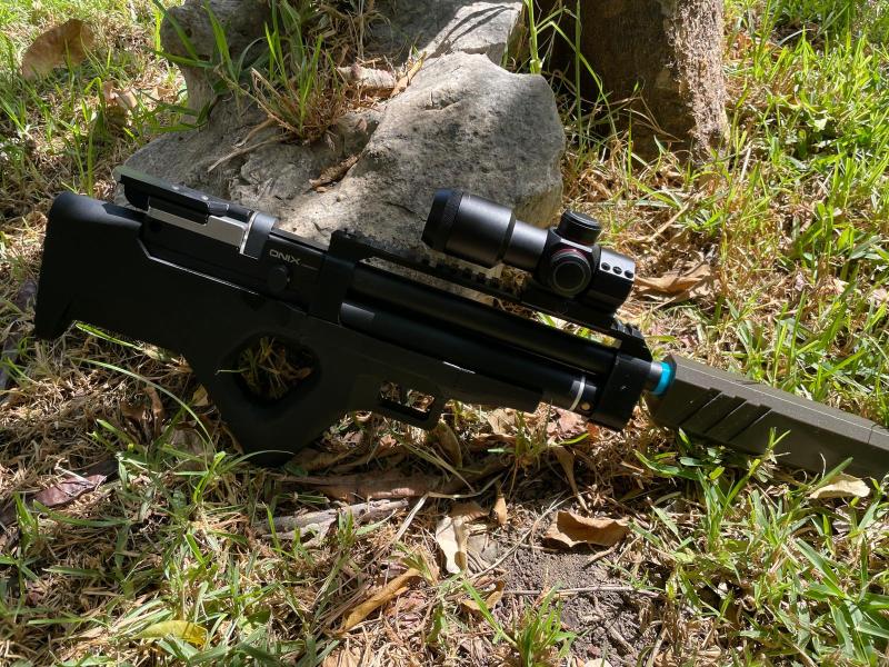 Bueno hace muchísimo tiempo que no paso por aquí dejo unas imágenes de un mini Bullpup la base una ónix comando o pp750 se le aprecian los empalmes pues no lo corregí y monté así pero bueno … tiene muy muy buen ecare y no pesa nada .