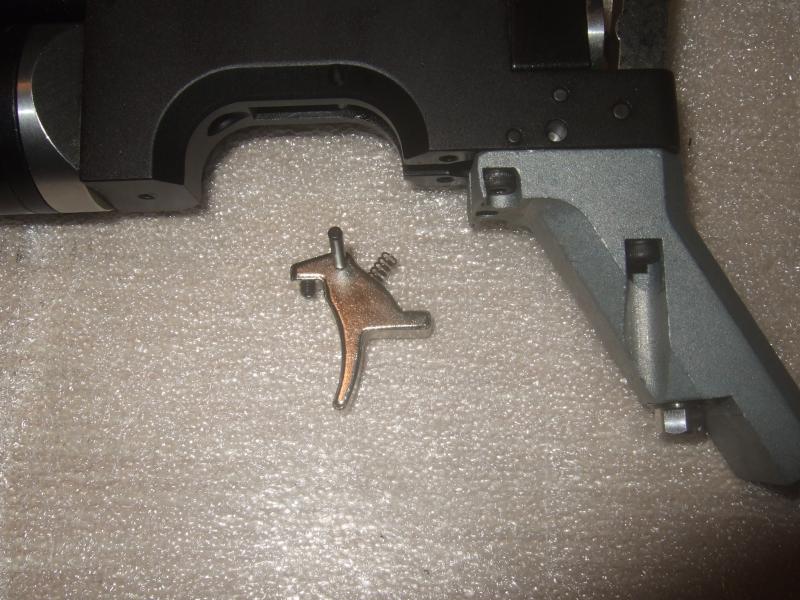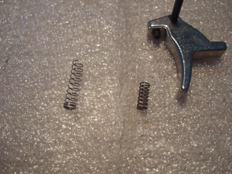 La idea es no complicarse la vida mas de lo debido, el muelle de la pala del gatillo se encarga de que este vuelva a su sitio tras el tiro, este muelle se suma a la fuerza que ejerce el de el 2º tiempo. Pues bien, cambiando este por uno de bolígrafo de la misma longitud pero con menos seccion he conseguido dejar el gatillo perfecto para mi.
