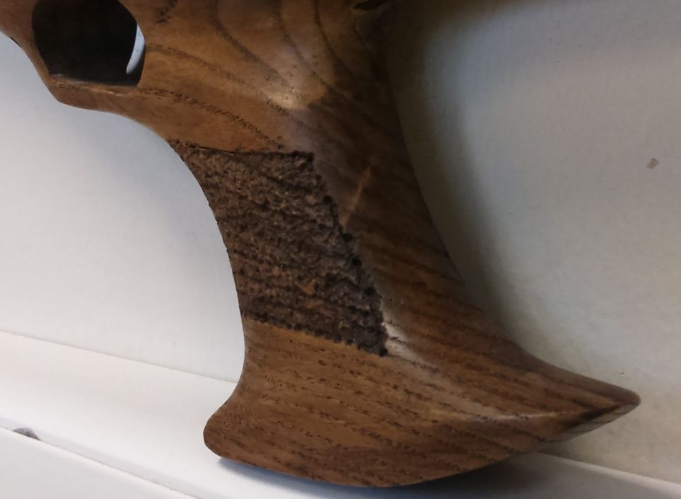 En el tema del picado, si te consideras una persona con un mínimo de paciencia, aquí te adjunto alguna foto del trabajo que realice a una culata de haya, es tan sencillo como usar un simple clavo de toda la vida de dios y un martillo. No te asustes pues no es tanto trabajo como puedas imaginarte, en mi caso en 1 hora estaba hecho, pistolete y guardamanos.Por supuesto le proporciona un agarre soberbio y espectacular.