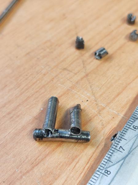 Metí la varilla en un taladro y por el puerto de carga de la escopetilla y a taladrar... Pues funcionaba de lujo!!! Como la varilla empezaba a taladrar el balín de copa por la parte de atrás, quedaba centrada perfectamente. Después ya con el tema controlado y usando los dos sentidos de giro del taladro ( uno para taladrar y otro para extraer balines), iban saliendo del cañón poco a poco con el agujerito perfecto en el centro de los balines, yo me me partía de risa jjj, sacaria de allí 20 balines si no fueron más.