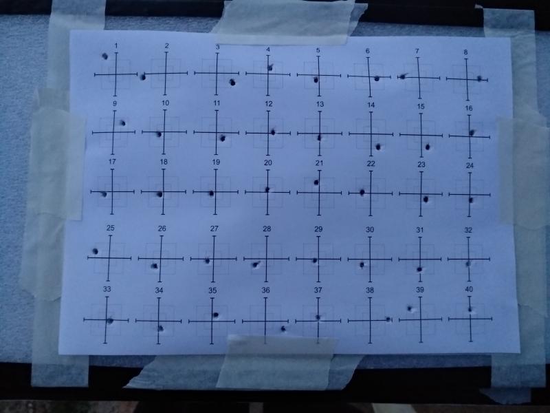 Por cierto, la carabina va de fábula y eso que no soy experto y seguro que no le saco el potencial máximo que tiene. Adjunto algunas dianas a 40 y 50 metros con viento mínimo y JSB Heavy.