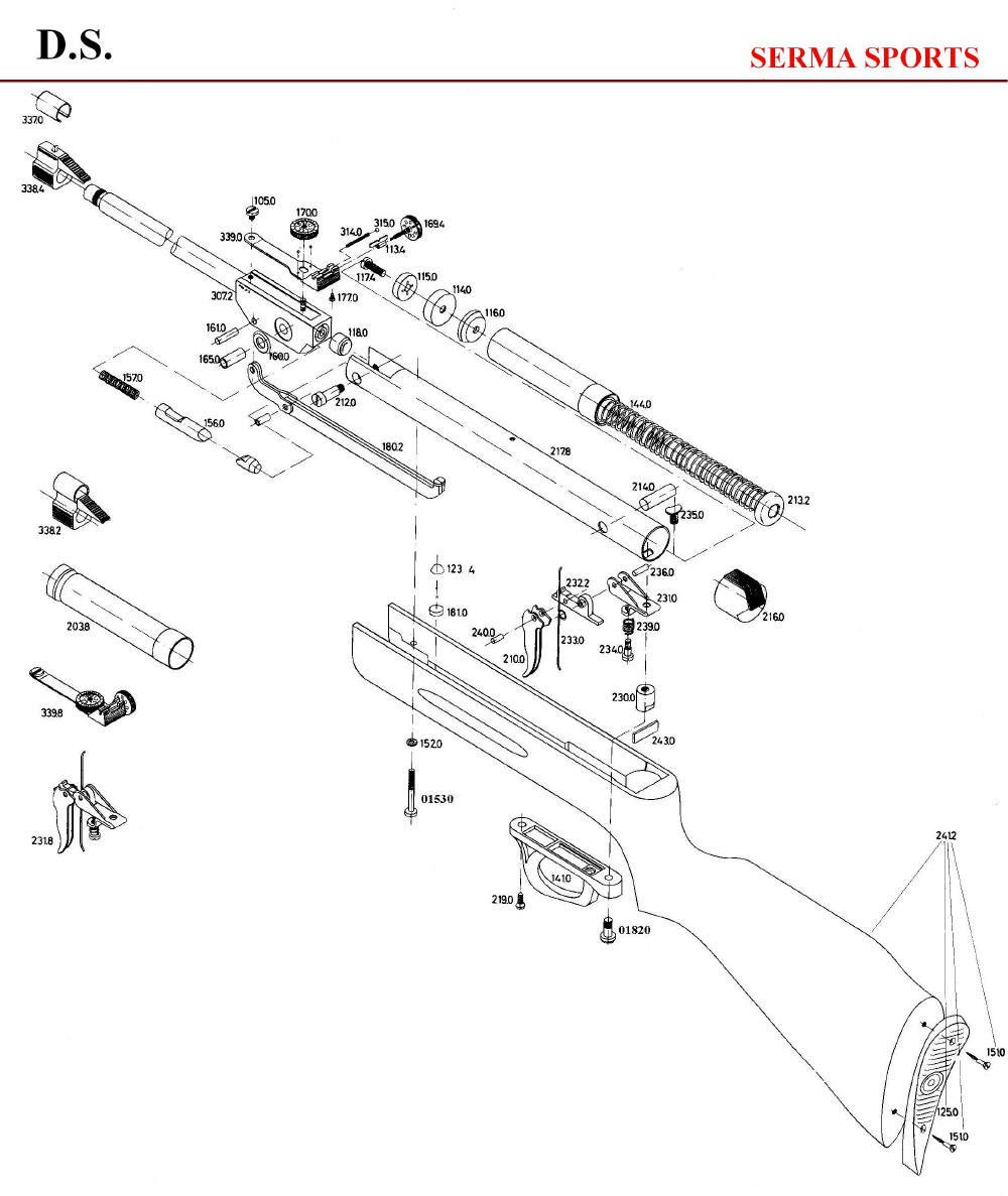 Gracias por el despiece.hoy he vuelto a desmontar las maderas .decir q la pieza q comprime el muelle la número 1802 q consta de dos piezas unidas por un remache se ha salido dicho remache.y queriendo arreglar he fastidiado más el remache..tendré q poner un tornillo.no me atrevido a sacar el muelle.mañana lo intento.lo q he visto q al quebrar el cañón el gatillo no engancha.no sé si es por culpa del gatillo o porq donde tiene q enganchar por culpa del muelle no lo deja.vamos q no carga..he probado regulando el gatillo haber si era por culpa de eso.pero no.curioso q tenga regulado r de gatillo.mañana os cuento
