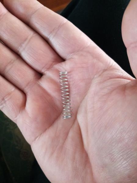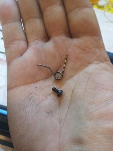 El tornillo, que debería ajustar el recorrido lo he sustituido por uno algo más largo, y el muelle también lo he sustituido por otro que he fabricado de alambre más delgado y queda más suave, a falta de probarlo.