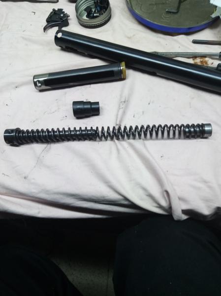 Hay un artículo en la página del maestro quinta en armeriaeolica donde prepara una gamo con todas estas modificaciones y explica la diferencia entre la guía del muelle antigua y la moderna que es como la que monta tu gamo un poco más estrecha. Yo le haría caso al maestro quinta que sabe de esto y es un auténtico artesano .