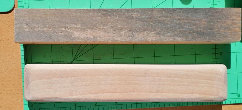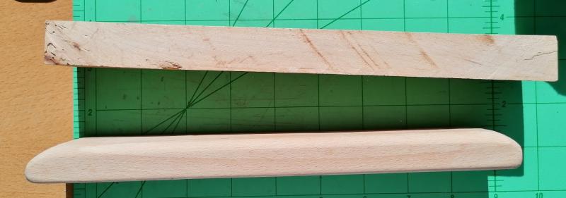 Como base usé un listón de madera de haya, que tras su paso por la escofina y las lijas quedó así: