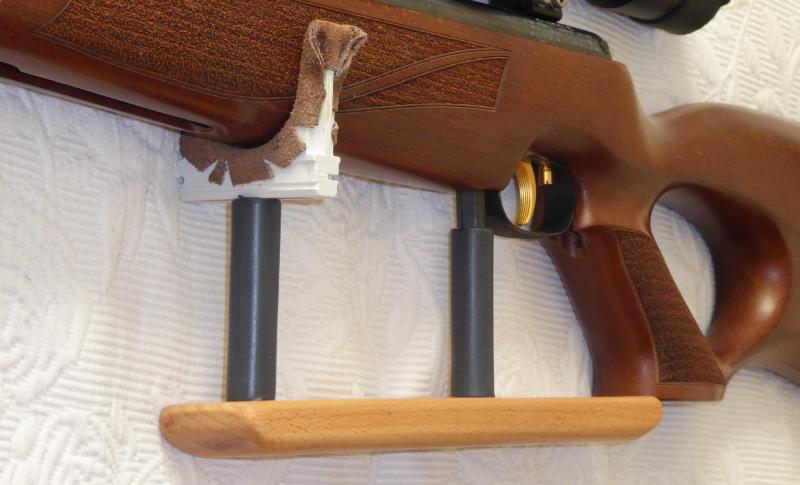 Buen trabajo, yo tenía algo parecido para mi hw97 aunque infinitamente mas rústico. Un consejo acerca de medidas, el apoyo es mas versátil y eficaz si dejas mas superficie hacia la parte delantera, creo que hacia atrás te sobra bastante, así además podrás uasrlo mejor para tirar en sentado y de rodilla, tal como lo tienes si apoyas tan atrás y con esa culata th creo que será algo inestable.