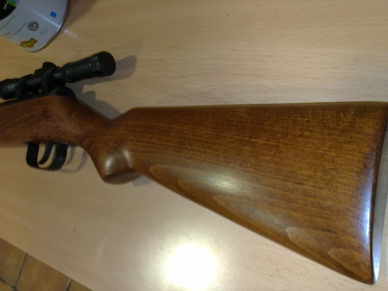 En esta foto te pongo mi Norica 61-c de haya que le hice tal cual te he expuesto y de otra culata en madera de cerezo