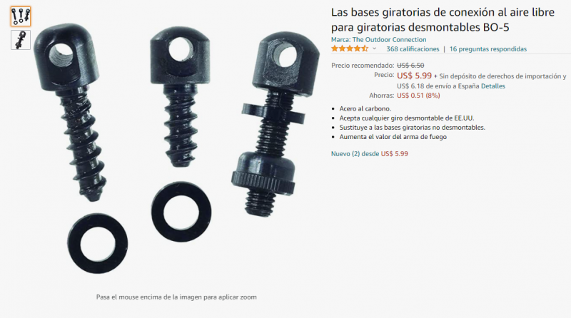 Esta claro que no tiene una utilidad enorme, pero creo que a la hora de cogerla es mas cómodo. Creo que voy a optar por la idea de poner una anilla en la palanca de carga y la otra en el thumbhole; Así si me canso puedo quitarlo todo sin haber agujereado la carabina.