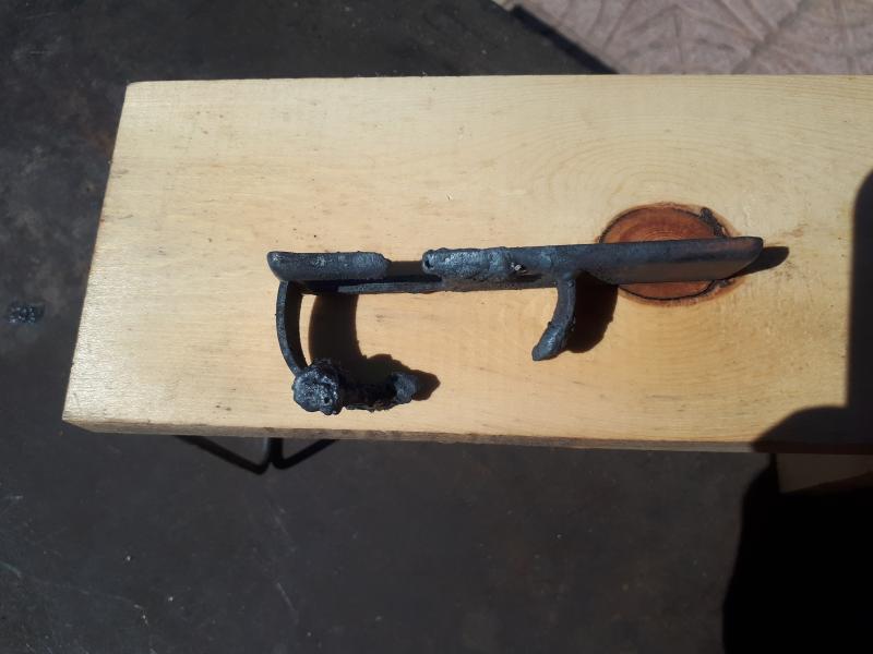 El problema vino cuando lo fuy a pavonar que se me piro la olla lo metí en la fragua y en menos de un minuto en lo que prepare el aceite se fundió todo y se combirtio en esto. Nome deja subir más fotos .