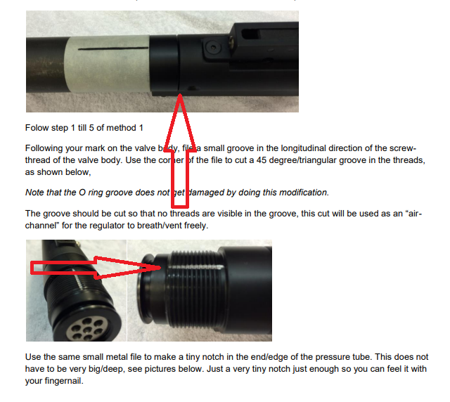 Por cierto, tambien recomiendan encarecidamente, pulir lo mejor posible el interior del deposito donde apoya la junta torica del regulador, para garantizar la estanqueidad, y que no haya fugas de aire.