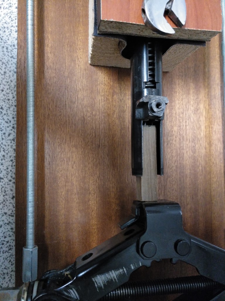 Necesitas, SI o SI, un compresor de muelles de carabinas, y una pieza redonda de madera con una forma especial, para empujar sobre el tapón trasero, y que libre de un voladizo que lleva donde va la palanca del seguro........
