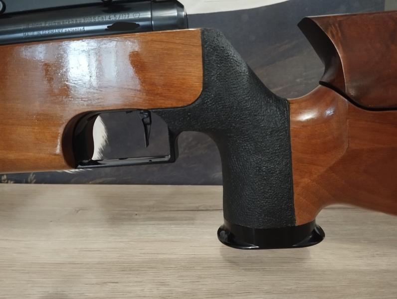El como restaures esa culata es una cuestión de tu gusto personal.....lo que yo haría seria repintar el pistolete con pointura negra satinada o mate, te vale cualquier marca comercial de las habituales y un pincel fino mismamente del chino más cercano....... el resto como ya la tienes lijada y parece que es haya, yo la tintaría con nogalina, después la acabaría al aceite............yo lo suelo hacer asi.