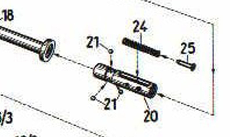 Las piezas en cuestión son las marcadas con el número 21 en la foto de detalle que adjunto y son tres bolitas de acero con un diámetro de 4,75 mm o 0.187 in.