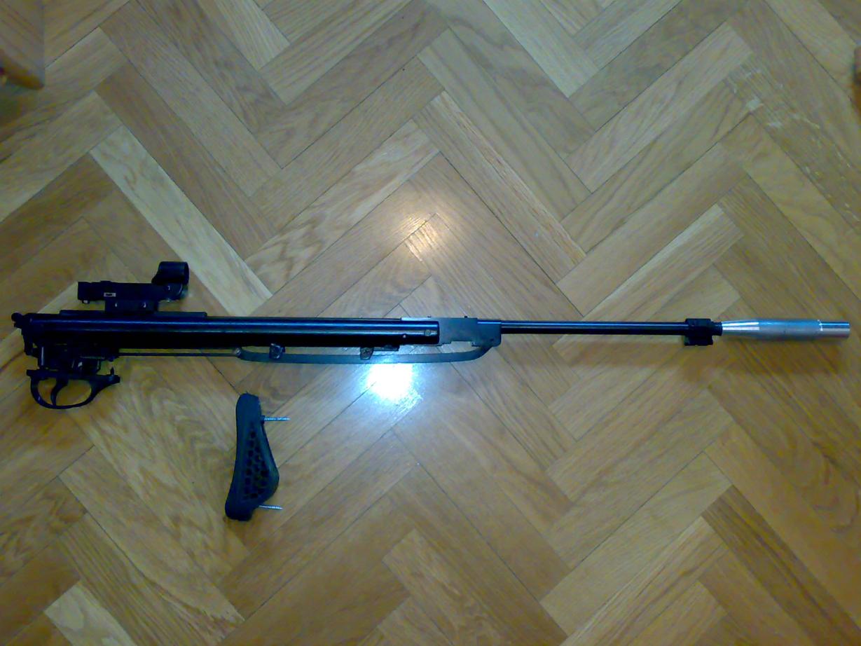 Que bocacha más preciosa que ha quedado, sabes que? yo cogeria el red dot o la mira que le pongas y la pintaría también con spray de aluminio!!![]()