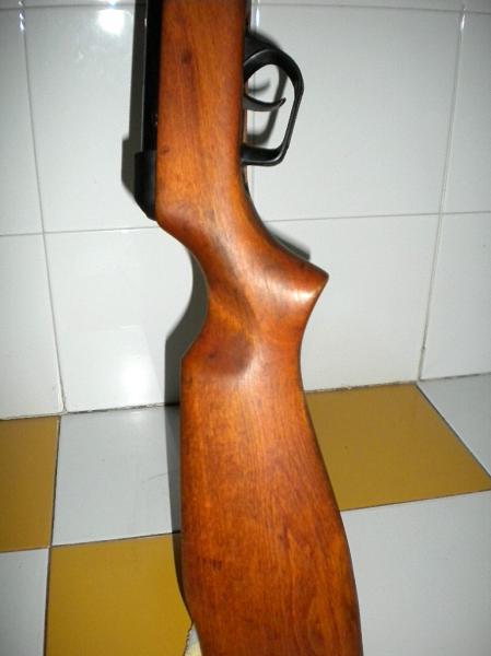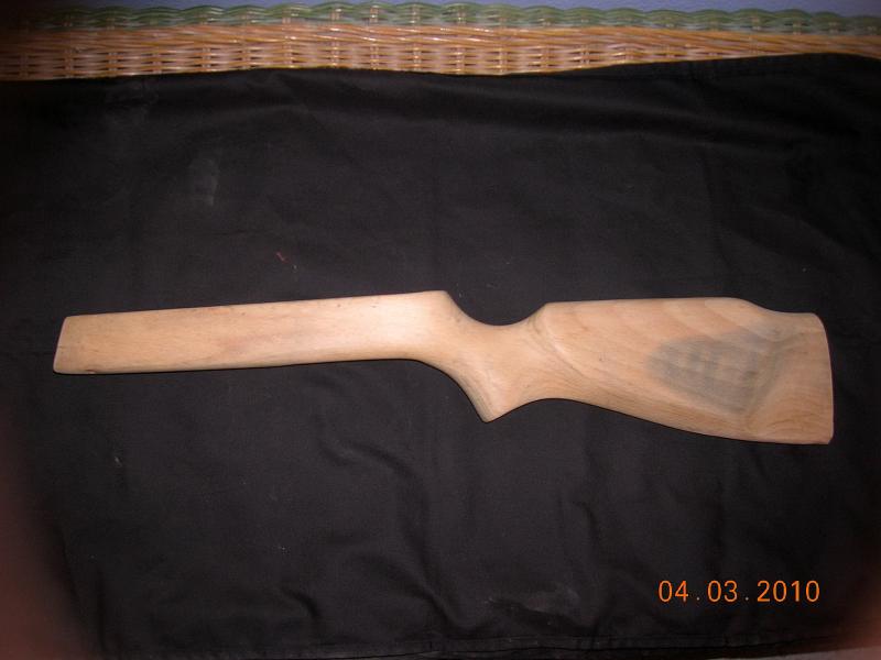 Los agujeros los puedes tapar con masilla para madera, la tienes de color nogal, caoba, etc, depende del color que quieras dar a la culata. Ten presente que estas masillas no admiten tintes al agua o alcohol, ni ceras ni aceites, por lo que tendrás que usar barniz tinte para pintar la culata.