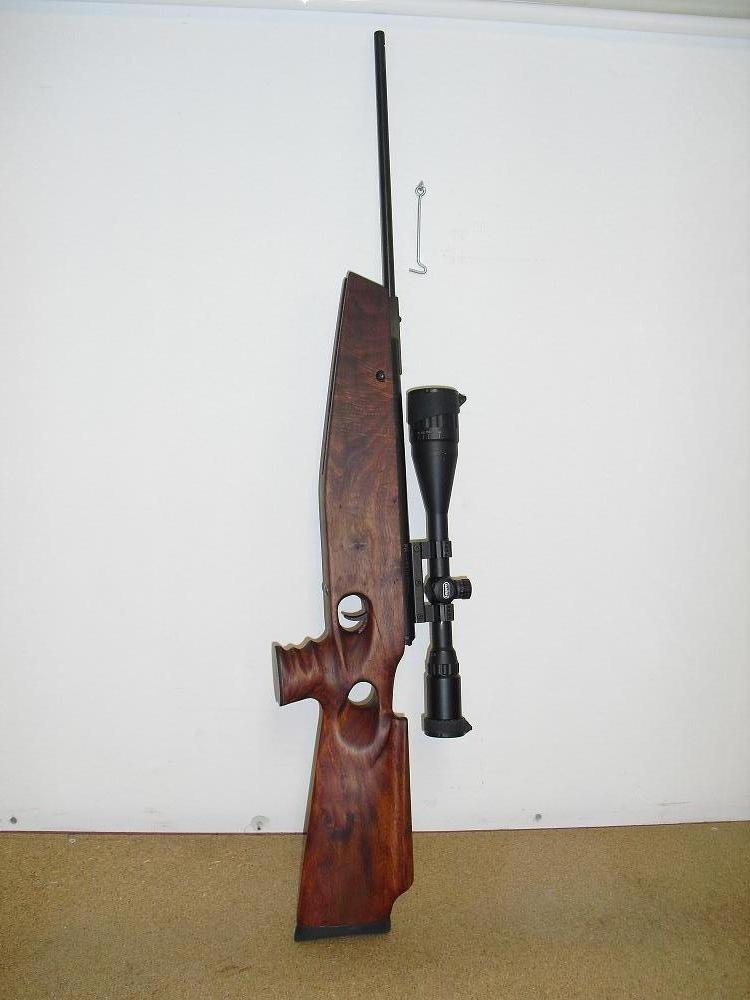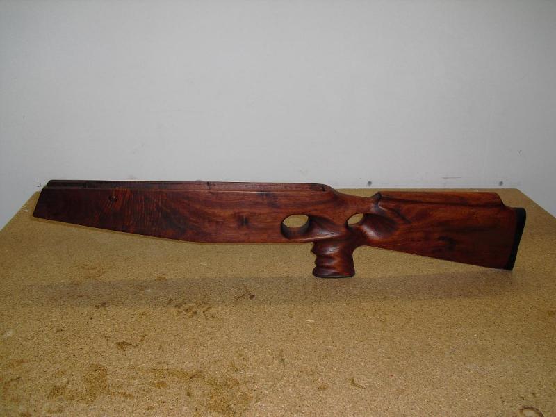 la culata es de madera de nogal,su peso no lo se todabia no a pasado por la bascula,pero tendria que haber aumentado ya que es mas grande.