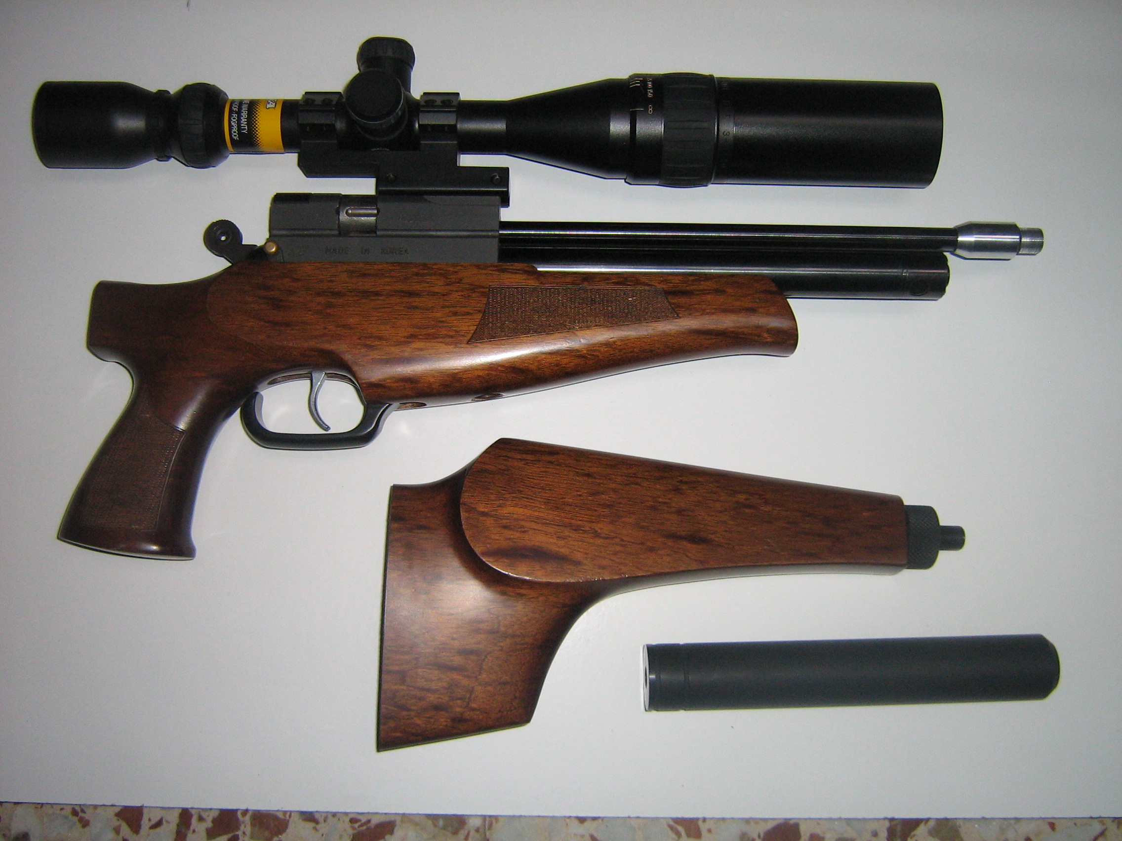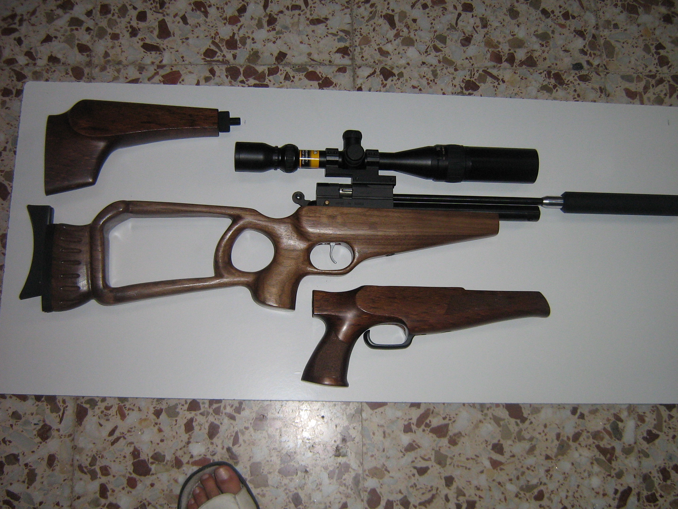 no es la pistola, es la AR6 take down renegade, es una carabina desmontable de las que yo llamo "de maletín", y la culata es la original para la take down, a la que yo me refería es a la otra no desmontable, que se la mande y el la ha retocado.