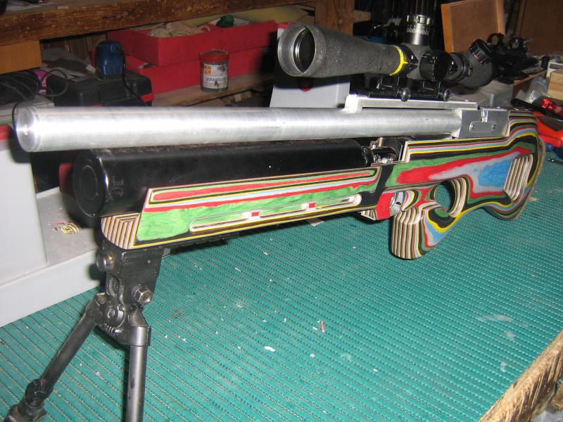 calentita , pero calentita, breech multitiro del maestro TRAGATOR, enfundado cañon y silenciado bulbarrel, culata laminada diseño mio, el amigo se empeño en hacerle una culata pero no este modelo es una prueba y al final nos ha gustado a los dos