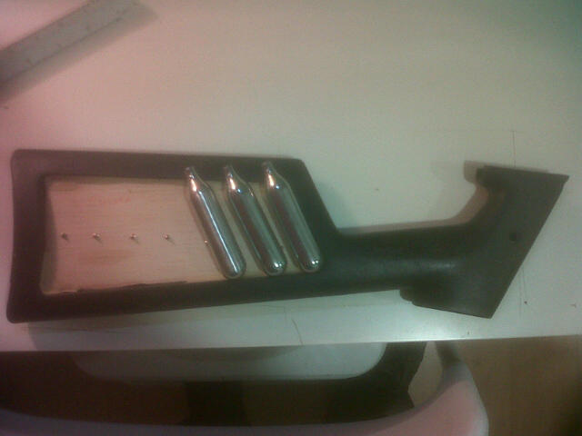Bueno después de poner la fibra y de colocar los botecitos que mas tarde servirán para albergar las cargas de Co2...(no tengo fotos de los botecitos) pero cualquier bote en el cual entre una carga de Co2 ya servirá.