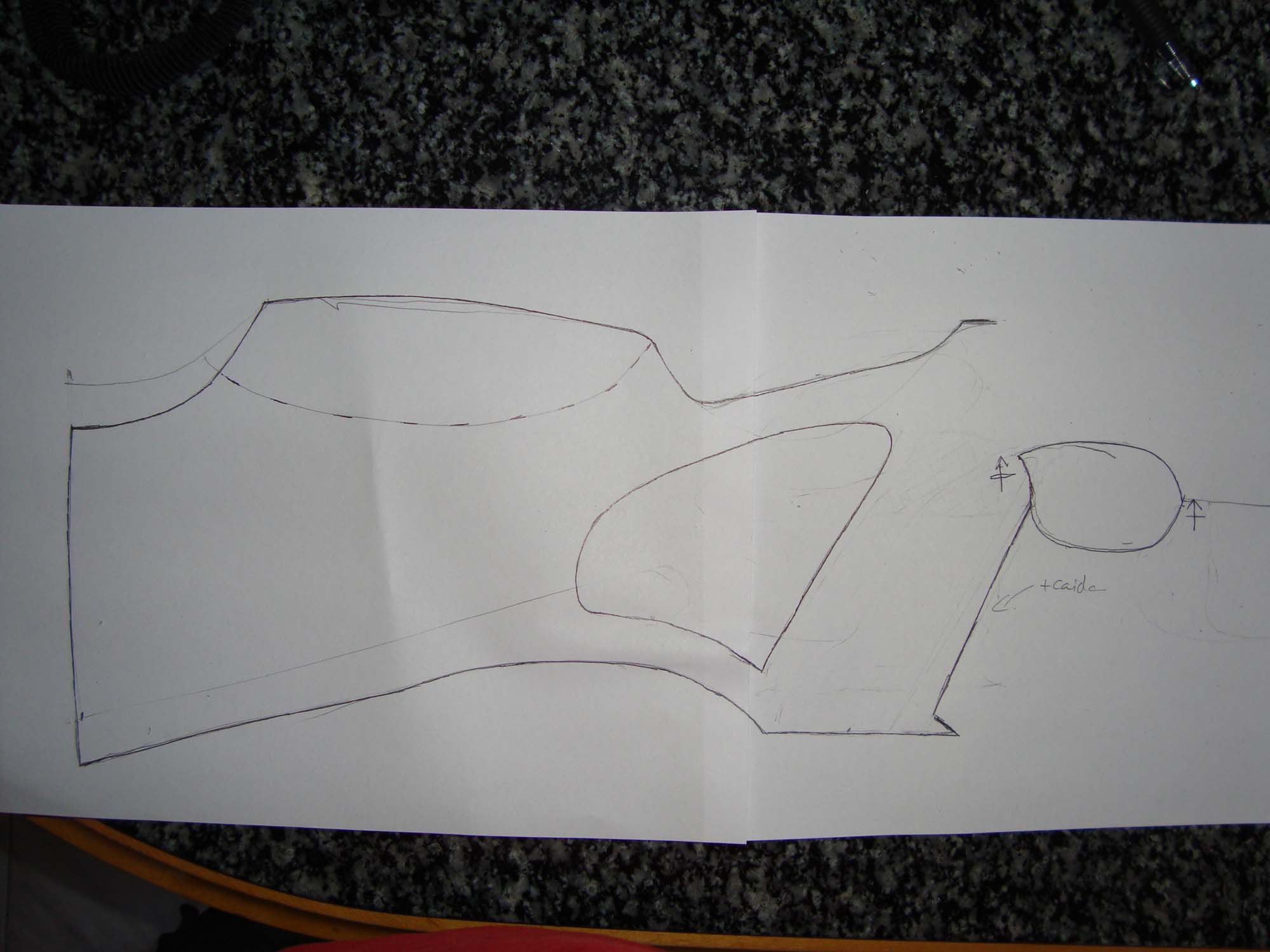 Copie una culata que me gustaba de una foto de Internet. La fui aumentando de tamaño en el ordenador, hasta conseguir el tamaño que quería. Luego la imprimí por partes que uní con celo y así conseguí la silueta. No fue difícil, un poco laborioso.