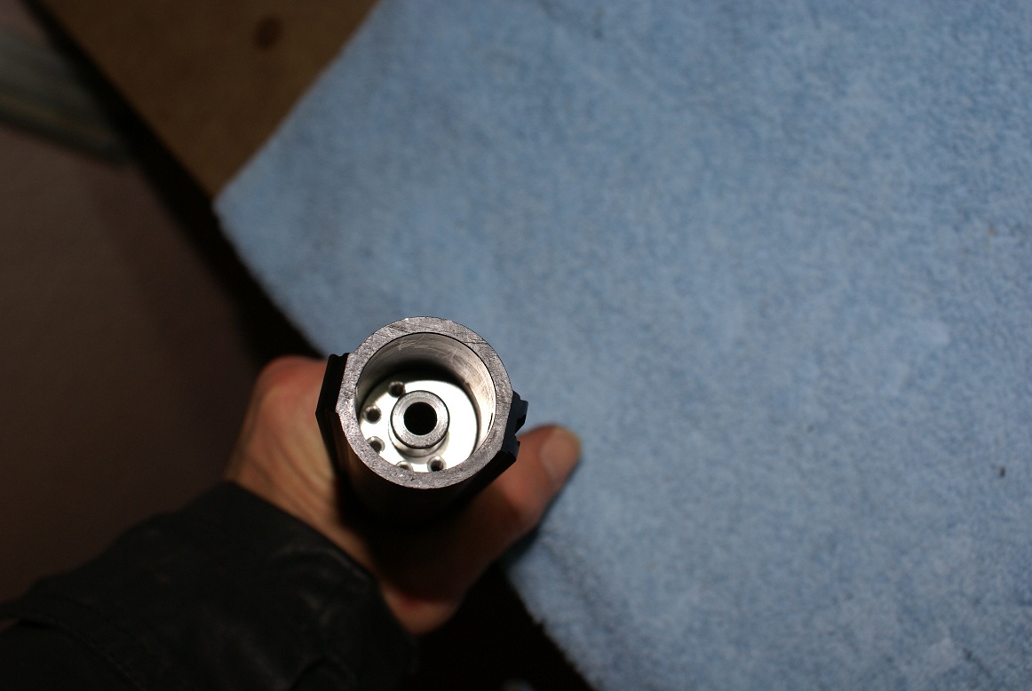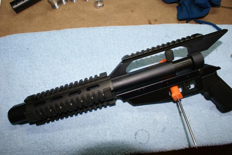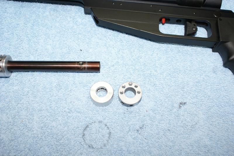 12.- Cumple su función perfectamente y la guía de la culata se acopla perfectamente a el. También vemos como se ha modificado un Etac para adaptarlo a la rosca de la válvula y botella del Pistol.