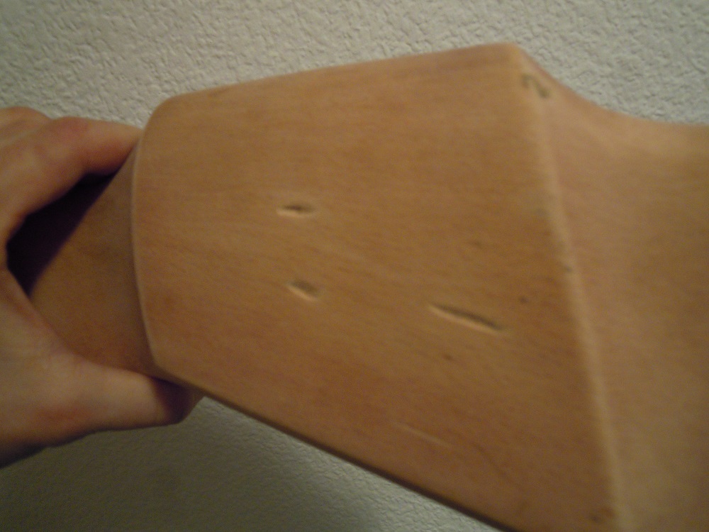 Si son sólo golpes hundidos y no falta madera, saldrán aplicándole con una plancha doméstica calor, poniendo un trapo de algodón muy húmedo sobre el golpe, eso hace que entre el vapor por el poro y se hinché la madera de nuevo. El resultado parece magia. Siempre que no falté madera en el golpe. Práctica antes con un trozo de madera similar, para que cojas el punto y el tiempo que debes de aplicar la plancha sobre el trapo etc.