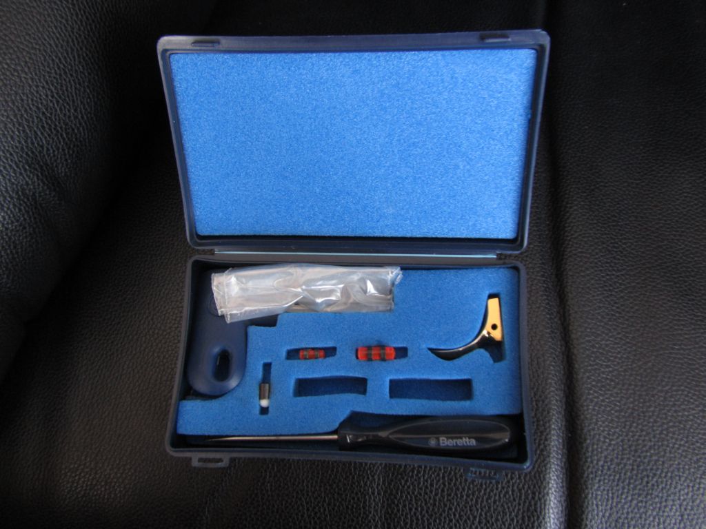 3- Accesorios originales: gatillo extra, herramientas, puntos de mira...
