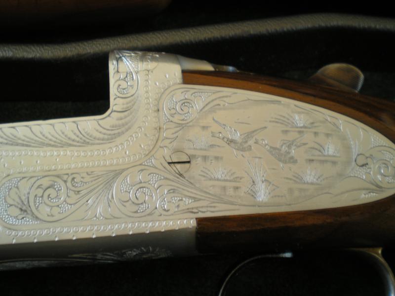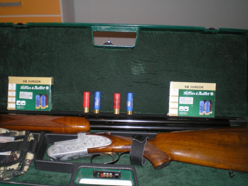Superpuesta alemana marca Neckerman en calibre 16/70. Escopeta expulsora y monogatillo con cañones de 70,5 cm de 3 y 1 estrellas respectivamente, probados a 1450 kg. Punto de mira de fibra óptica en rojo. Inmejorable estado de maderas y pavon como se puede ver en las fotos. Ningún fallo mecanico, ni la mas minima holgura. Arma muy robusta y fiable. Pletina entera con bonitos grabados de escenas de caza.