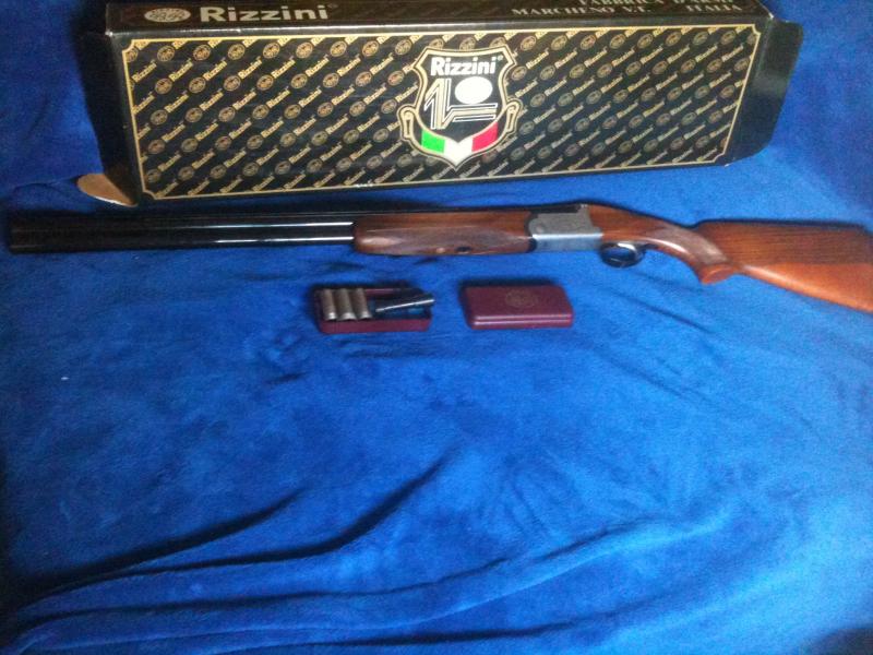 Por el escudo del maletín es una Baptista Rizzini, una escopeta superlativa, no confundir con la Emilio Rizzini que esas eran malas a rabiar, blandas, blandas.