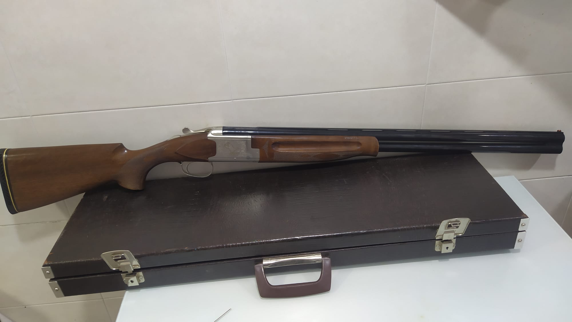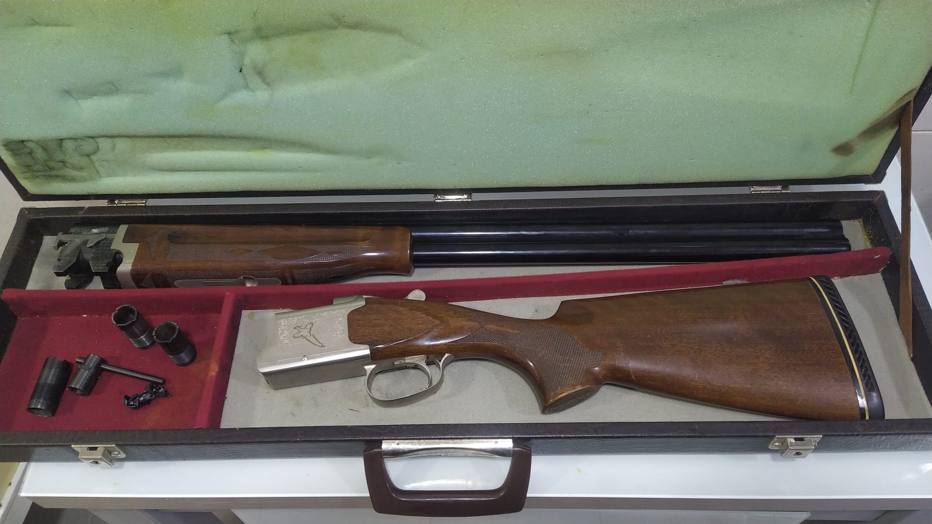Escopeta superpuesta Laurona Ernio , buen estado , cañones ventilados , expulsora , selectora , monogatillo , 5 chokes de 1 al 4 + cilíndrico.Largo de cañón,71cms.