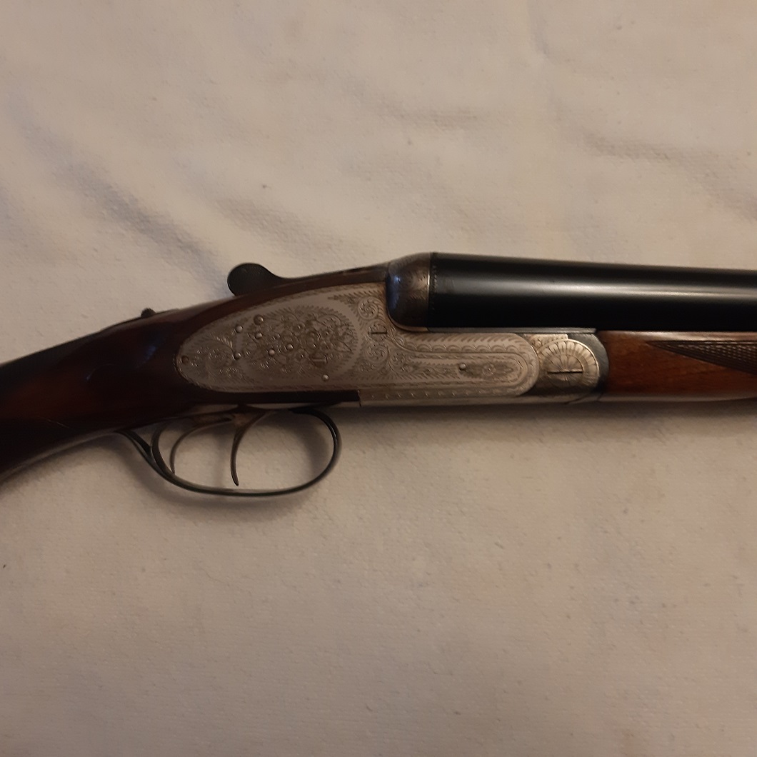Escopeta GRULLA mod. 210 E cal. 12/70 canones de 70 cm. de largo, con unos choques fijos de 6 y 10 decimas, los canones pesan 1.350 gr., la culata es inglesa con un largo de 36 cm .El disparador doble y articulado con un peso total de 3.200 gr. Z/1954 su fabricación, todo original sin restaurar, precio 600 eu. No cambios, atiendo watts app y correo.