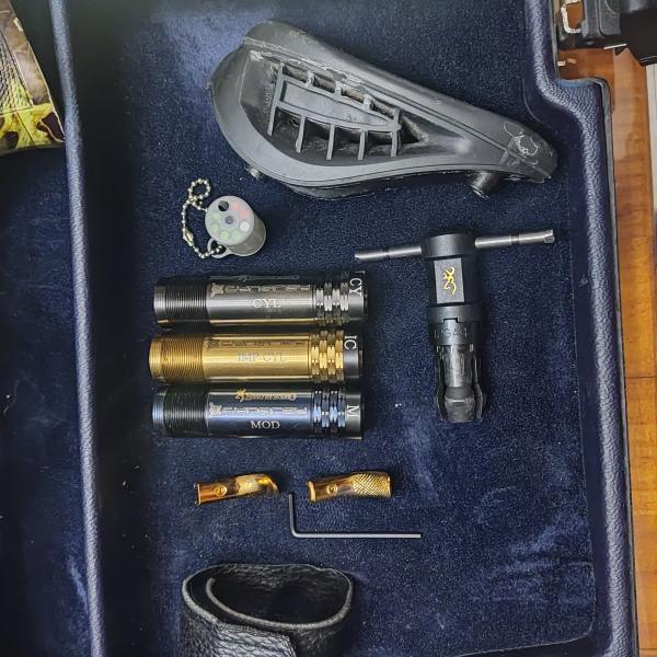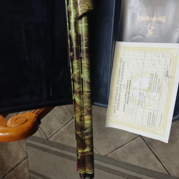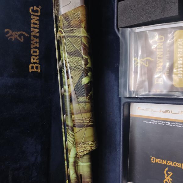Es el modelo Sporting , cañon 76cm cal. 12, con polichokes. Selector de tiro, culata y guardamanos de madera con hidroimpresion de camuflaje.