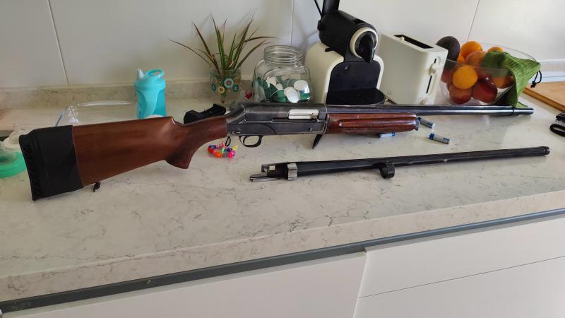 Se vende escopeta repetidora marca BREDA con dos cañones. Uno estriado para caza mayor y poder tirar bala con mejores prestaciones, o para tiros cortos tipo becada/codorniz dónde la apertura del perdigón es mayor. También tiene otro cañon con polichoque exterior pero no se si es 3 estrellas *** o 2 **. Lo que he podido probar alarga bastante. El precio es de 150€ se ha desmontado y limpiado a parte se ha colocado una cantonera un poco superior para mi estatura porque era algo corta. Mido 1.75m
