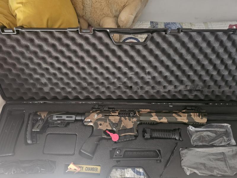 ...Pues tras permanecer desde que se adquirió guardada (se adquirió nueva a .......) y no haber hecho ningún disparo salvo entiendo los que realizara el BOPE, se vende Shelby MF-90 aunque se intento vender bajo Tizonaarms. De origen trae polichocks, correa de transporte, llave desmontaje, cargador de 2 y 5 cartuchos, bipode y punto de mira adicional además de los tipo magpul abatibles. Como complementos adicionales se compro un cargador extra de 5 y otro de 10. El modelo MF-90 era el tope de gama pues tanto el upper como el lower son mecanizados. En las series 70 y 80 el lower es de material plástico. Además esta escopeta se adquirió tal cual fotos ósea en esos 2 colores de fabrica. Esta en Granada. Para cualquier consulta ya sabeis. Pido por ella 850 euros mas gastos si los hubiere...