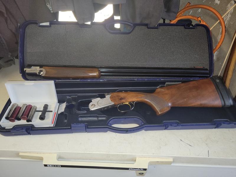 Vendo escopeta superpuesta Beretta Silver Pigeon I HP Sporting en calibre 20.76 con cañon de 76cm y 5 chokes y maletin original pesa 3.120g con el sistema de reducción de retroceso Kif Off puesto para que pegue menos la escopeta esta prácticamente nueva ya que no la uso para mas fotos y información solo por WhatsApp al 666377374 no me interesan cambios solo venta la escopeta esta en Hervas (Cáceres) si se entrega en mano doy los cartuchos que tengo.