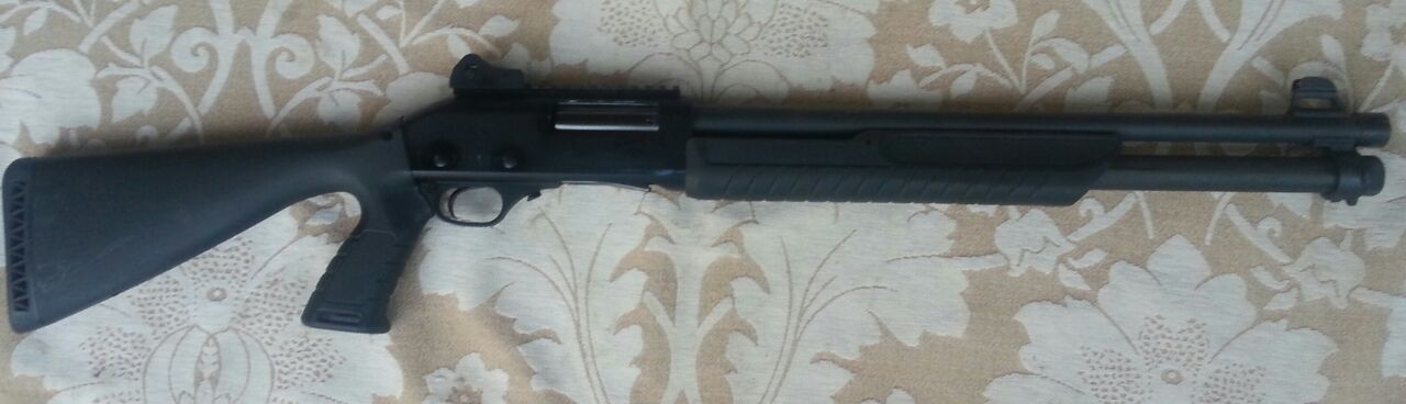 Escopeta corredera que puede utilizar todo tipo de munición, perdigón, postas, postas de goma, bala, ..... Especial para los miembros de las Fuerzas y Cuerpos de Seguridad y Militares. Mira regulable en altura y lateralidad de encare rápido y fibra óptica con rail picanntiny. Un muelle en el mecanismo y delantera que facilita la recarga (MUY INTERESANTE). Recamara de 76 mm y culata PRO FORCES. Cañón de 51 cm y peso de 3,05 kg.