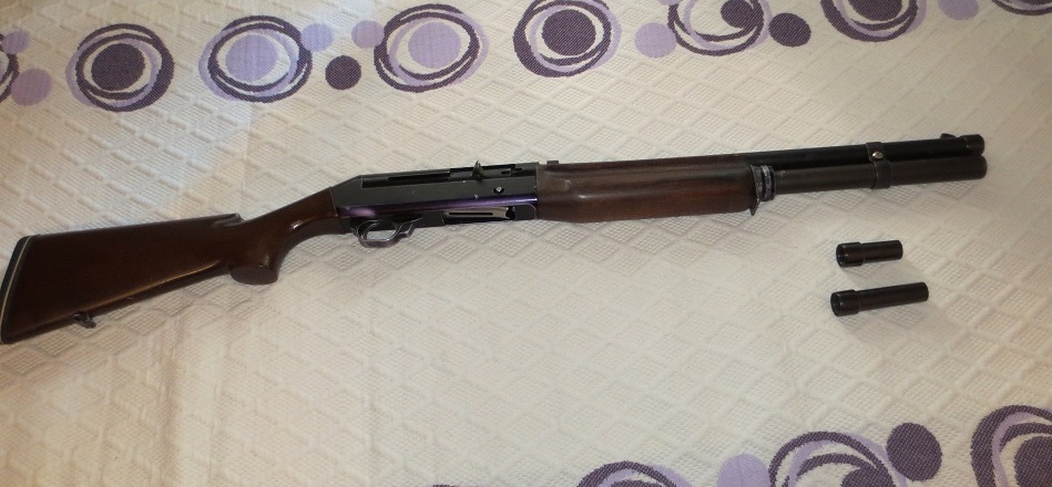 La escopeta es del calibre 12, tiene el cañón cilíndrico de 47 cm., con rosca exterior para choques, está provista de alza y punto de mira, el depósito está previsto para 7 cartuchos + 1 en la recámara, se entrega con limitadores de 2 + 1 y de 4 + 1, y se vende con cubrerosca y dos choques exteriores que vienen numerados con el 1 y 5.