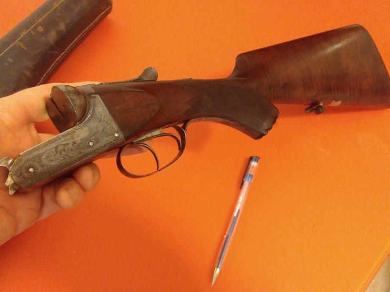 Algunas fotos más, de detalle. La Greener no llega a los 2,600 kilos. Tiros largos dos y una estrella. Extractora, ideal para caza del pájaro o para. Perdiz en llanura, por su impresionante alcance.