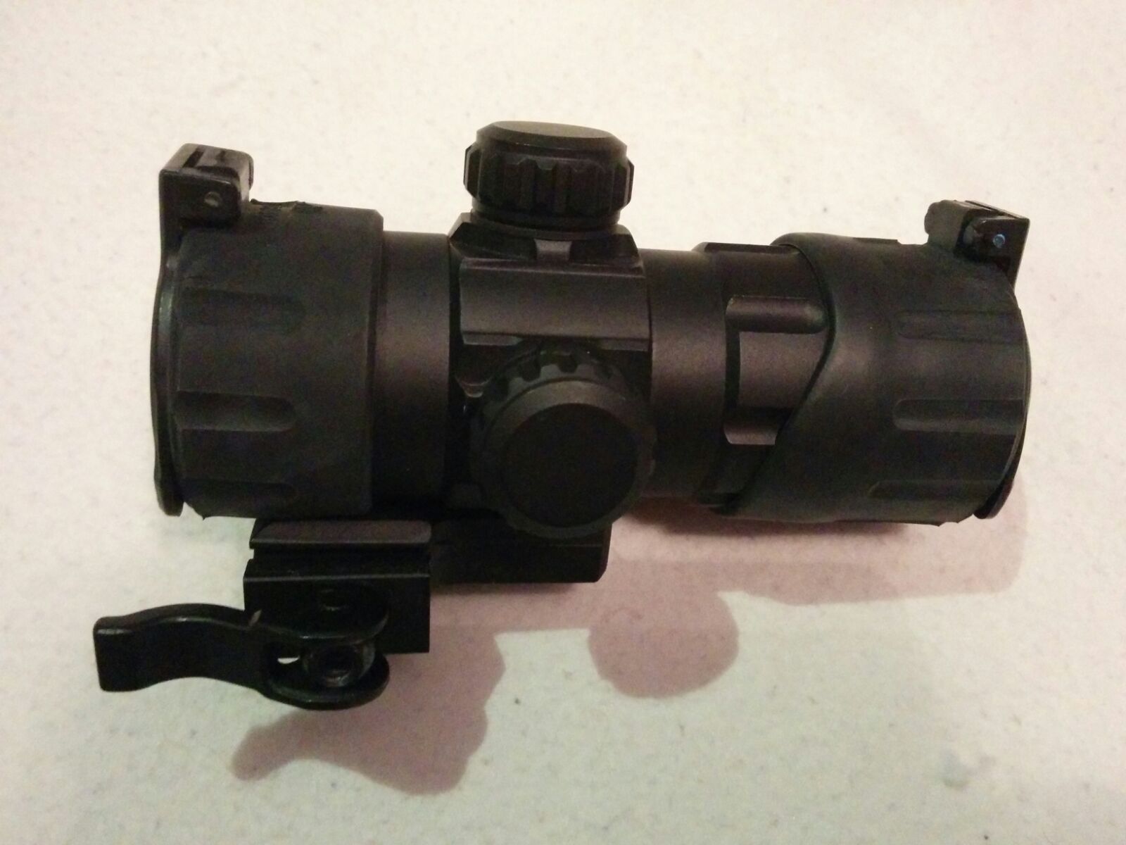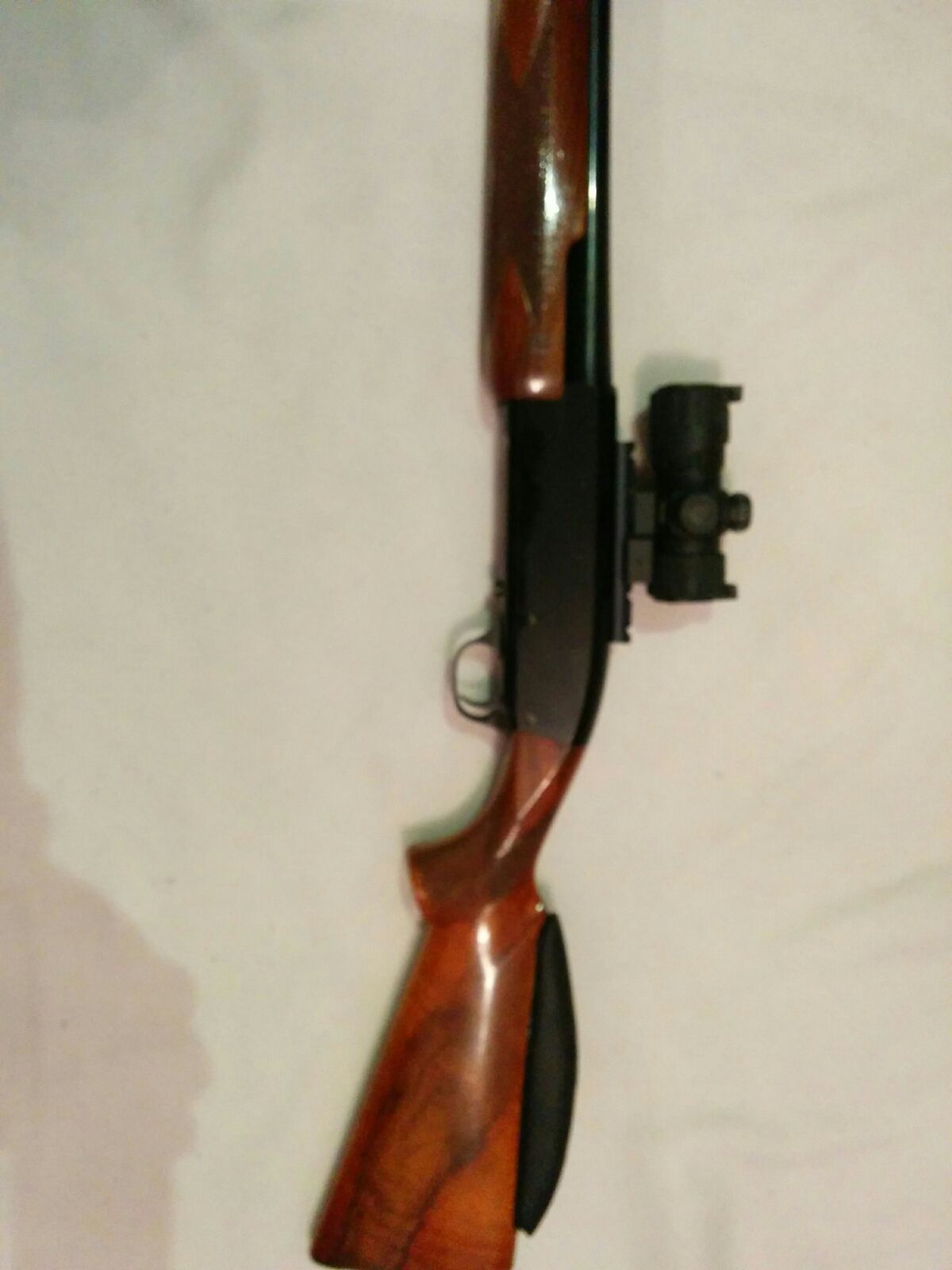 Escopeta de corredera con cañon de 60 cilindrico y liso. Calibre 12. Muy buen estado. Con visor de punto rojo/verde leapers con regulador de intensidad. Muy ligera, buen arma para batidas y tiros de cortadero.