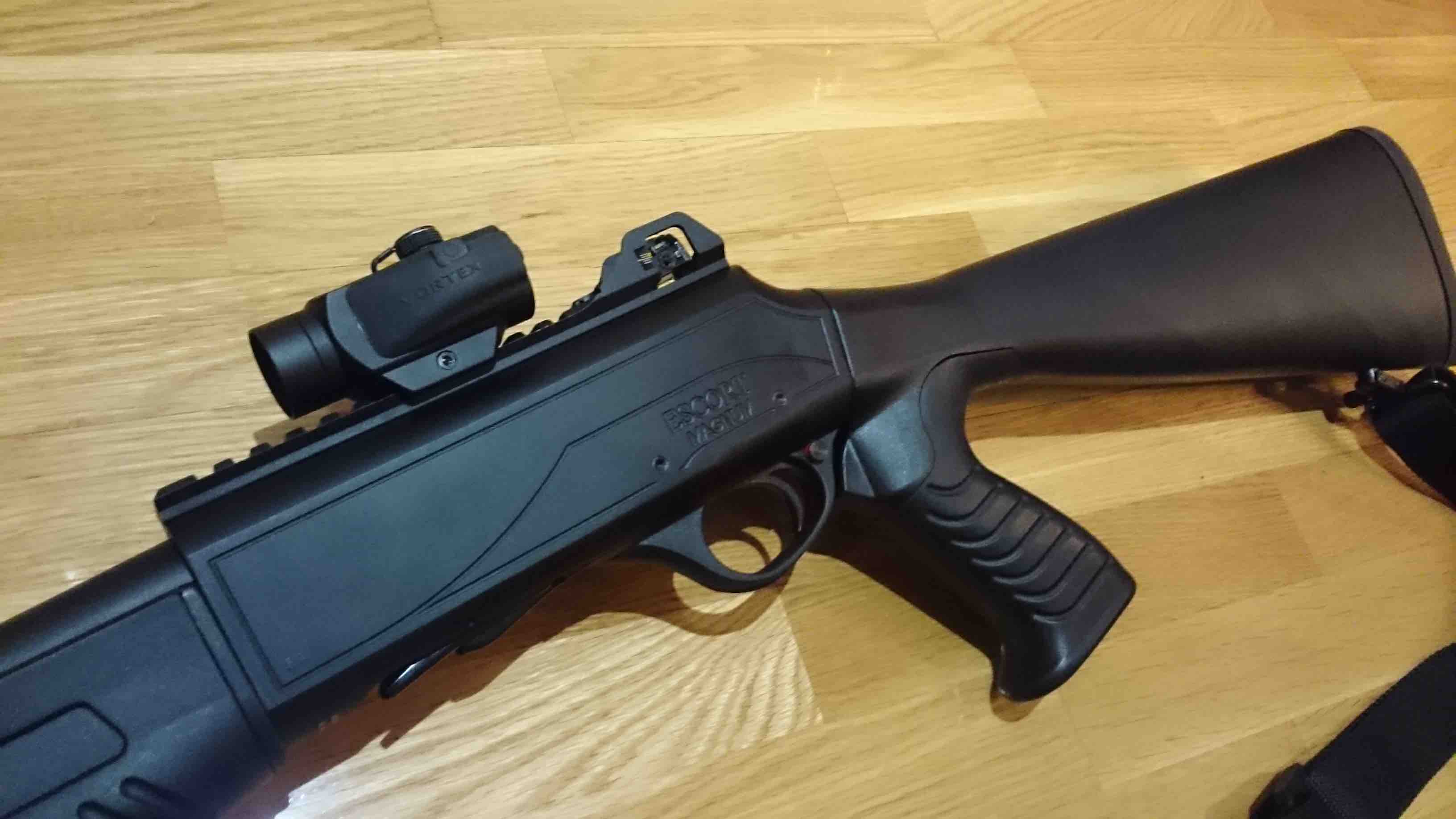 El arma está en Asturias. Tiene 15 disparos realizados y el precio de todo el conjunto es de 450 euros + portes. Sólo en extras lleva más de 200 euros instalados...
