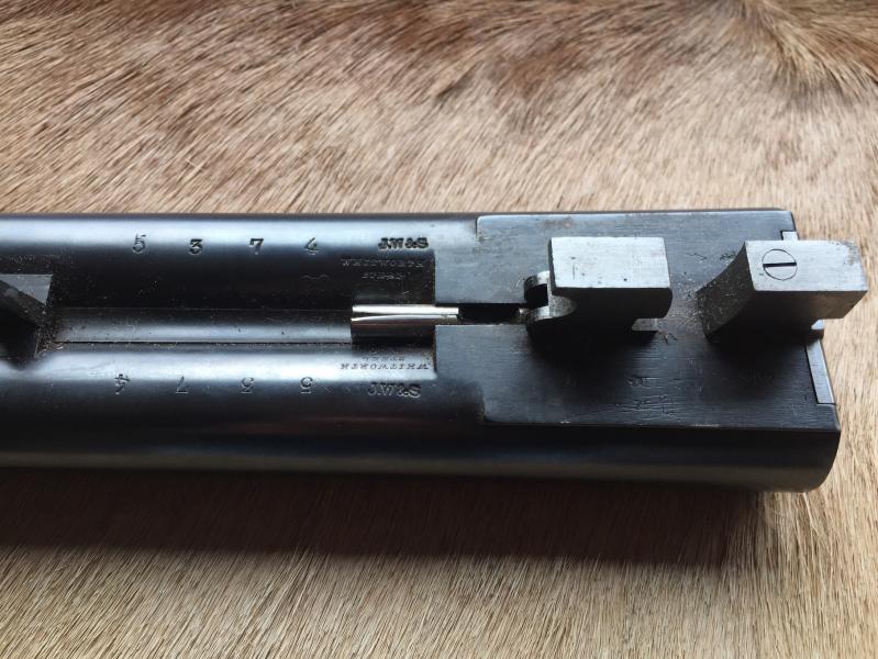 Tiene no uno, sino dos cañones originales, realizados en acero Withworth. Uno de 73,5 cms con un equivalente aproximado a cilíndrico/cilíndrico , y elo otro de y 73,5cms. y un equivalente de ***/****. Ambos cañones por dentro están como espejos. En algún momento de su vida ambos fueron pulidos, por lo que, como digo, sus "choques" son medidas aproximadas. Ambos cañones tienen el punto de mira de marfil.