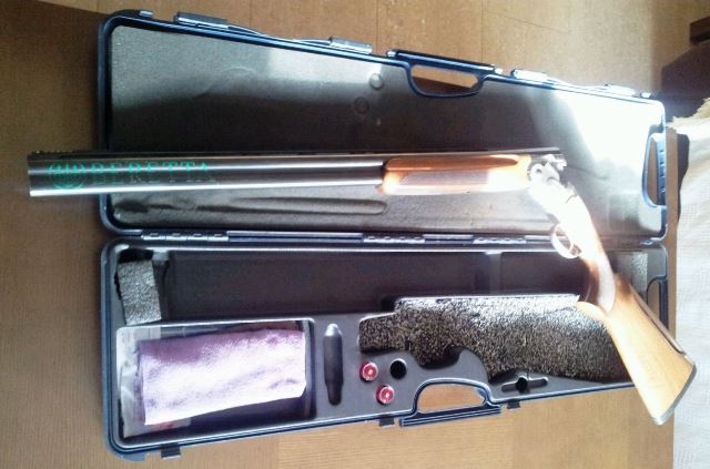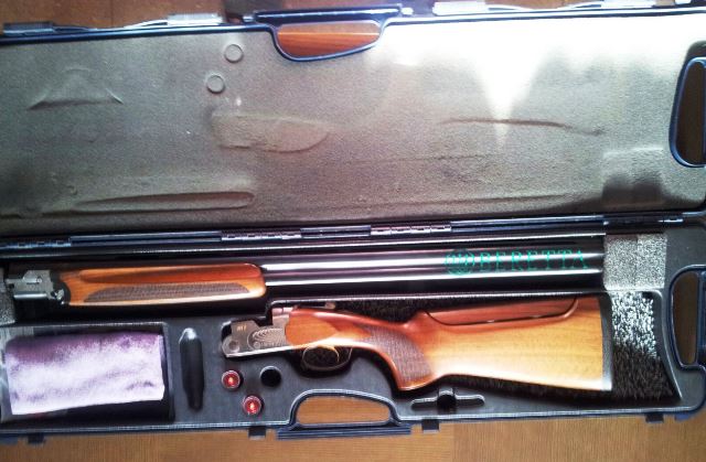 Cañón de 76, choques fijos de 2 y 1 estrella, carrillera ajustable, maletín original Beretta.