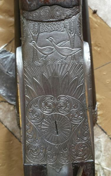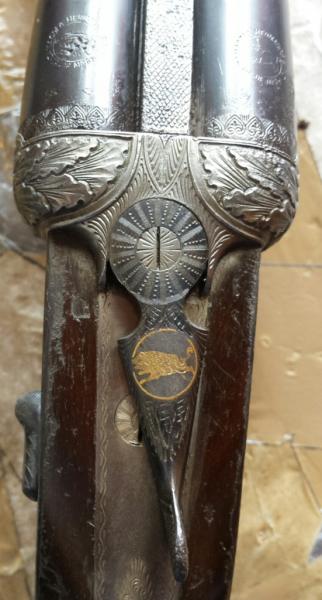 Tiene de todo, triple cierre Purdey, seguro automático, báscula con refuerzos laterales y orejetas, llaves de doble seguro desmontables a mano, interruptores de seguridad, expulsor selectivo automático, extractor de doble radio tipo Holand, válvulas escape gases, agujas independientes e intercambiables, cañones Demi-Block en acero especial Bellota y gatillo articulado.