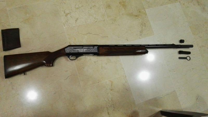 Escopeta semiautomatica en perfecto estado. No tiene ningún fallo de pavonado ni ningún arañón en la madera. Tiene muy poco uso. La vendo por no usar. Juegos de boquillas, 3, 1 y lisa. Regalo funda y culatín de goma.