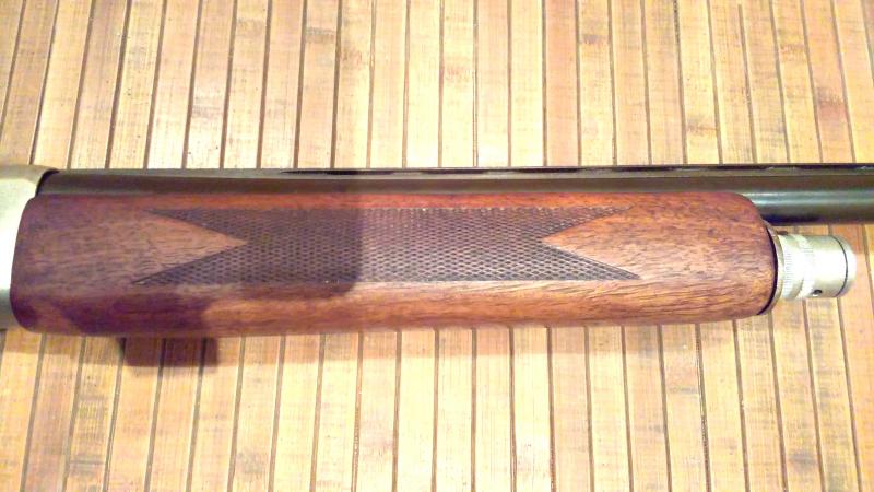 La escopeta ha sido reparada de maderas,dándole un acabado al aceite, y también se ha retocado un poco el pavonado y repasado mecanismos.Se ha dejado el aluminio de la báscula con un acabado semibrillante cepillado,así como el tapón de ajuste del cañón.