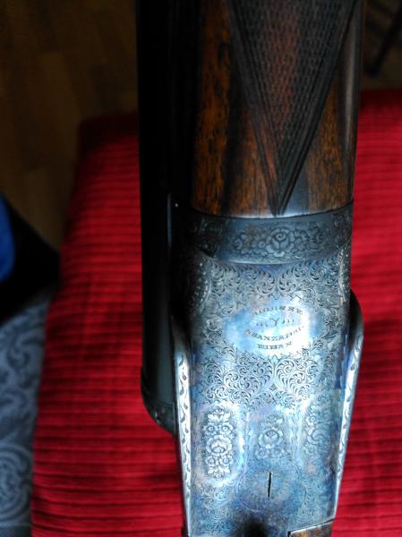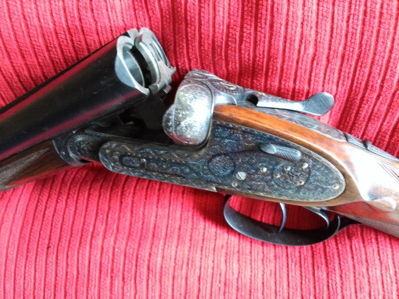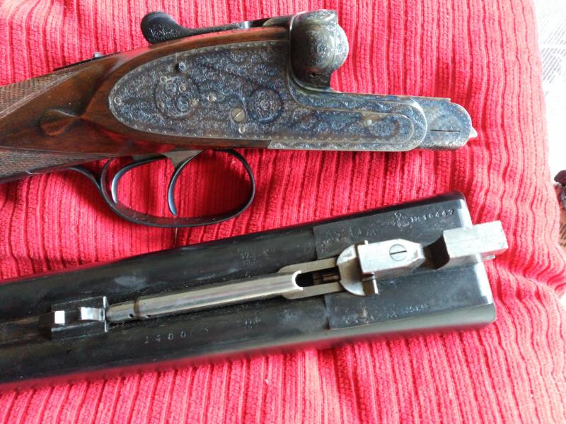 Normalmente las modelo 56 se hacían para pichón , pero ésta es de unas series que encargó la casa Purdey específicamente para caza . Culata inglesa, cañón de 71 cm, 3 y 1 estrellas y acero Boehler Antinit, no el Bellota o Cromo Niquel y apertura automática.