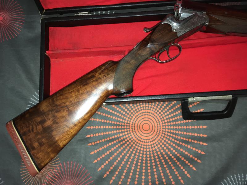Vendo escopeta Aya Coral De Luxe con muy poco uso. El único desgaste que presenta es en la zona baja del guardamonte, por lo demás está impecable y perfectamente ajustada. Calibre 12/70. Posee chokes fijos y punto de mira de fibra verde. Cañón de 71 cm. Doble gatillo, expulsora, carrillera y cantonera tipo inglesa. Maletín de terciopelo rojo muy similar al de la imagen, pero recalco que NO ES ESE. Precio: 650€ + portes. Un saludo.