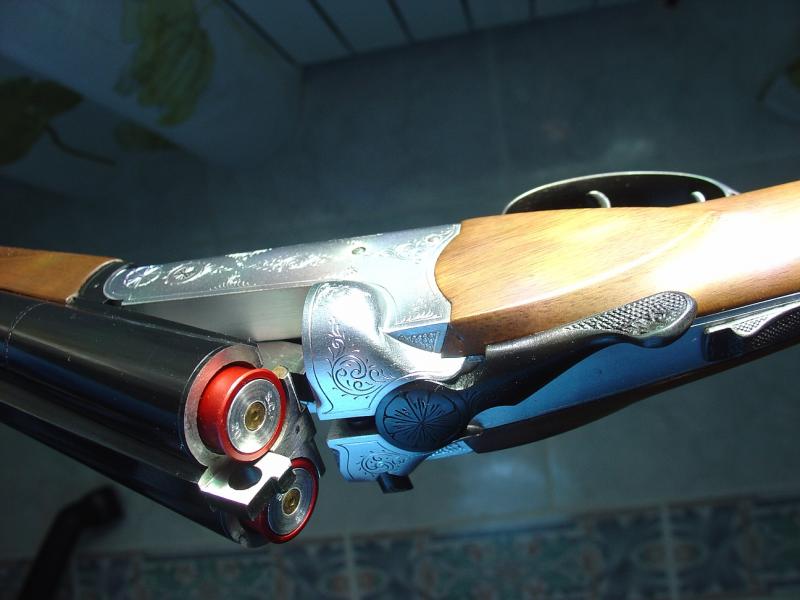 Extractora no expulsora (para los que no les gusta ensuciar los campos), culata pistolet, pletina corta y cierre triple tipo Greener. Nunca ha salido de caza. Perfecta para zorzales o codornices.