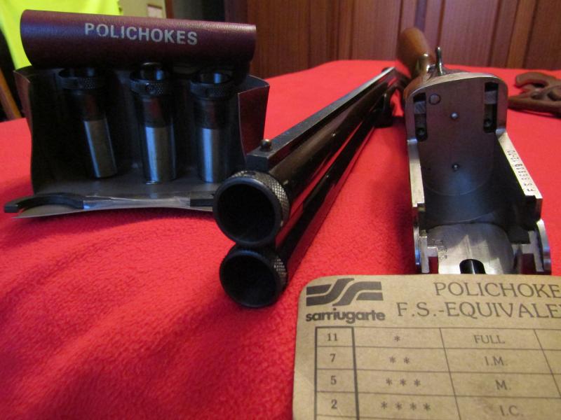 Hola compañeros. Tengo el cupo lleno y quiero aligerar el armero, así que pongo a la venta una estupenda superpuesta Francisco Sarriugarte Sporting con 5 polichokes, del full al cyl, cañones ventilados de 71 cm., banda ventilada, cierre Greener y disparador único inercial. Se regala funda.